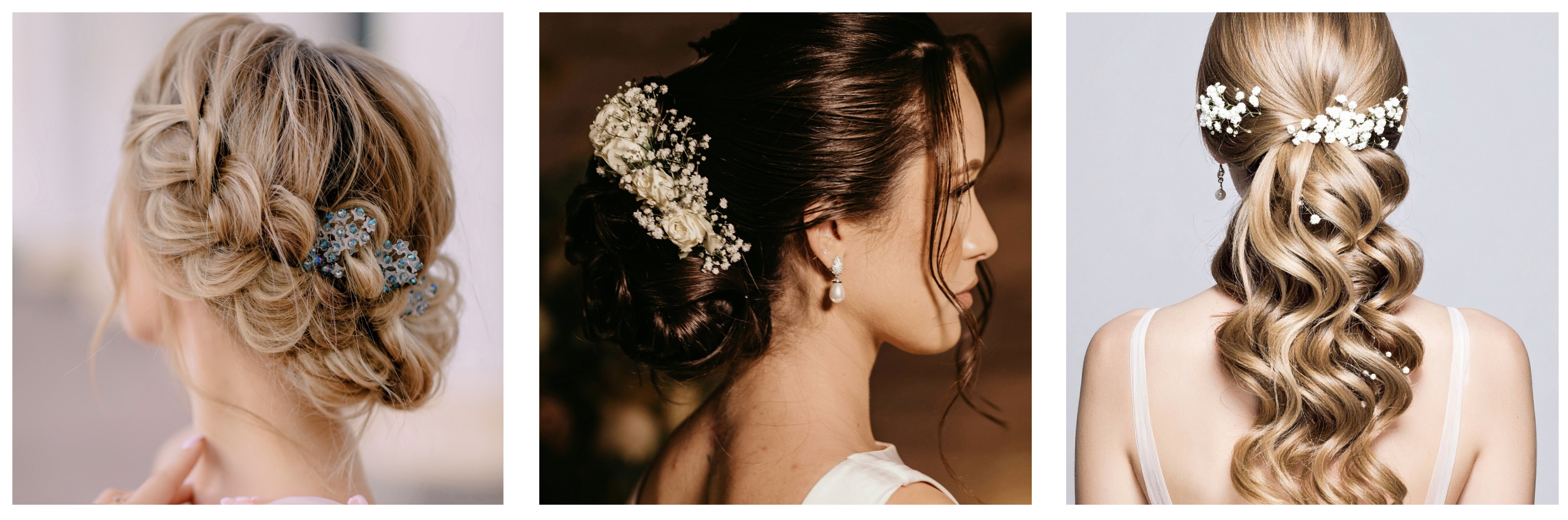 Choosing the right hairstyle for you: Consider the formality and type of wedding you are having when choosing a hairstyle. Casual, loose looks are suitable for daytime or informal weddings, while up do’s are more appropriate for a formal, evening look. Your hairstyle and headpiece should be complimentary to each other as well.